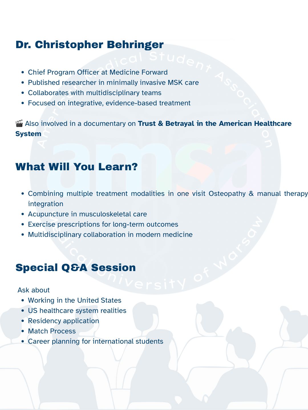 Innovations in Minimally Invasive MSK Care and U.S. Healthcare & Residency – Q&A Session